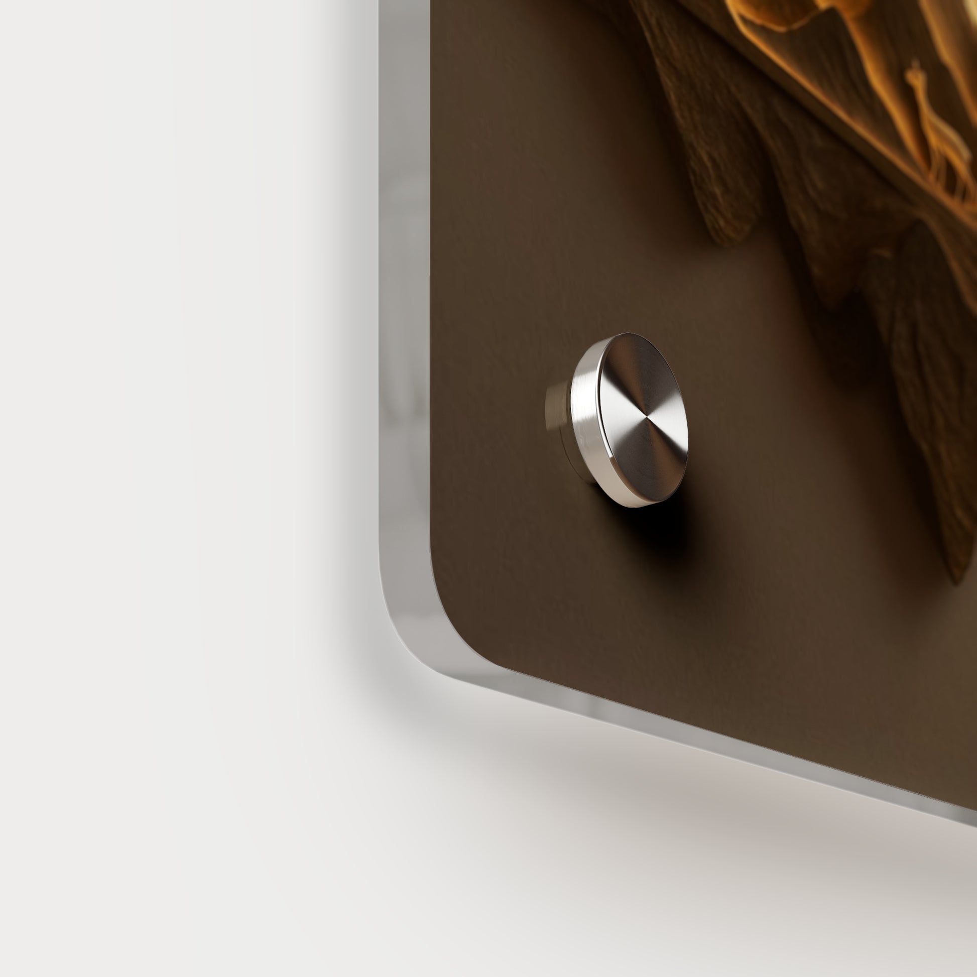 Acrylic art panels are a modern way to display beautiful and vibrant art that looks like it's embedded in clear glass. They have a clear, glossy acrylic surface and a white vinyl backing. Four silver stand-offs make it very easy to mount to the wall. Make your own original designs and print them on any (or all) of the seven available panel sizes in horizontal and vertical orientations. Square dimensions are available.