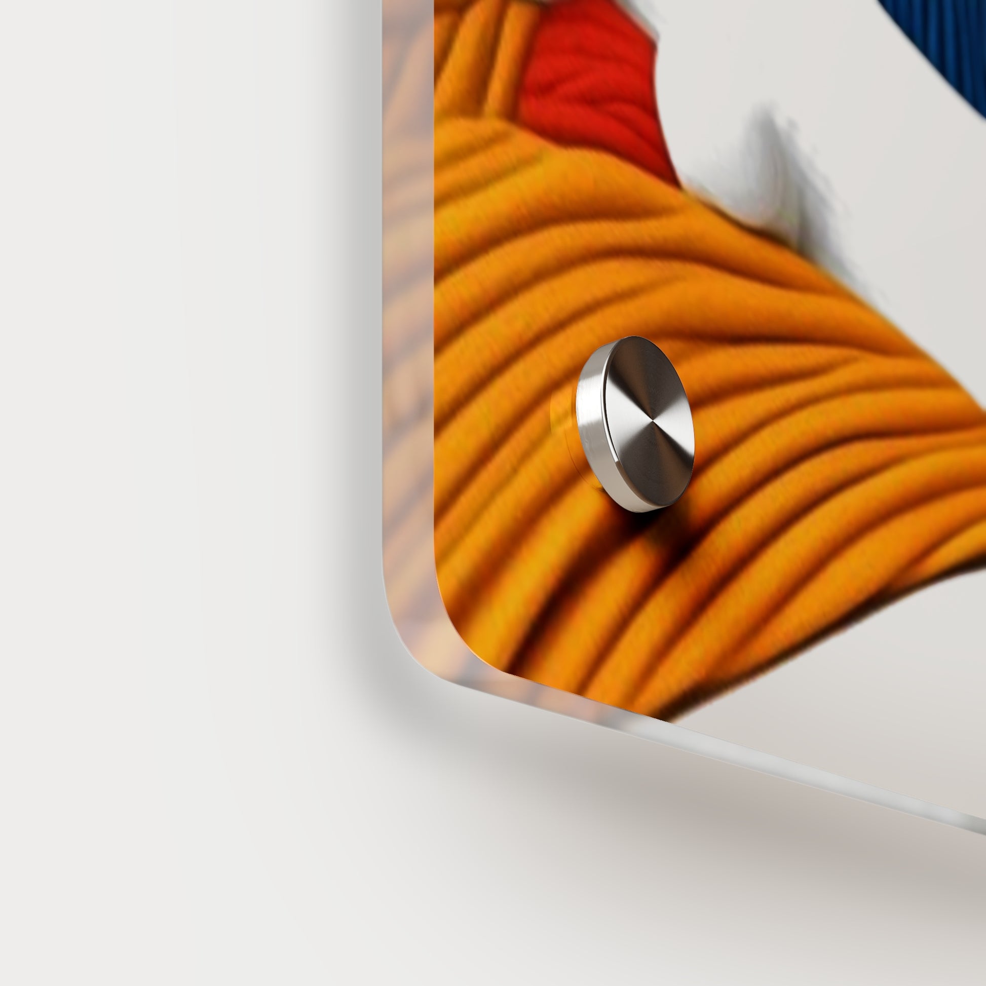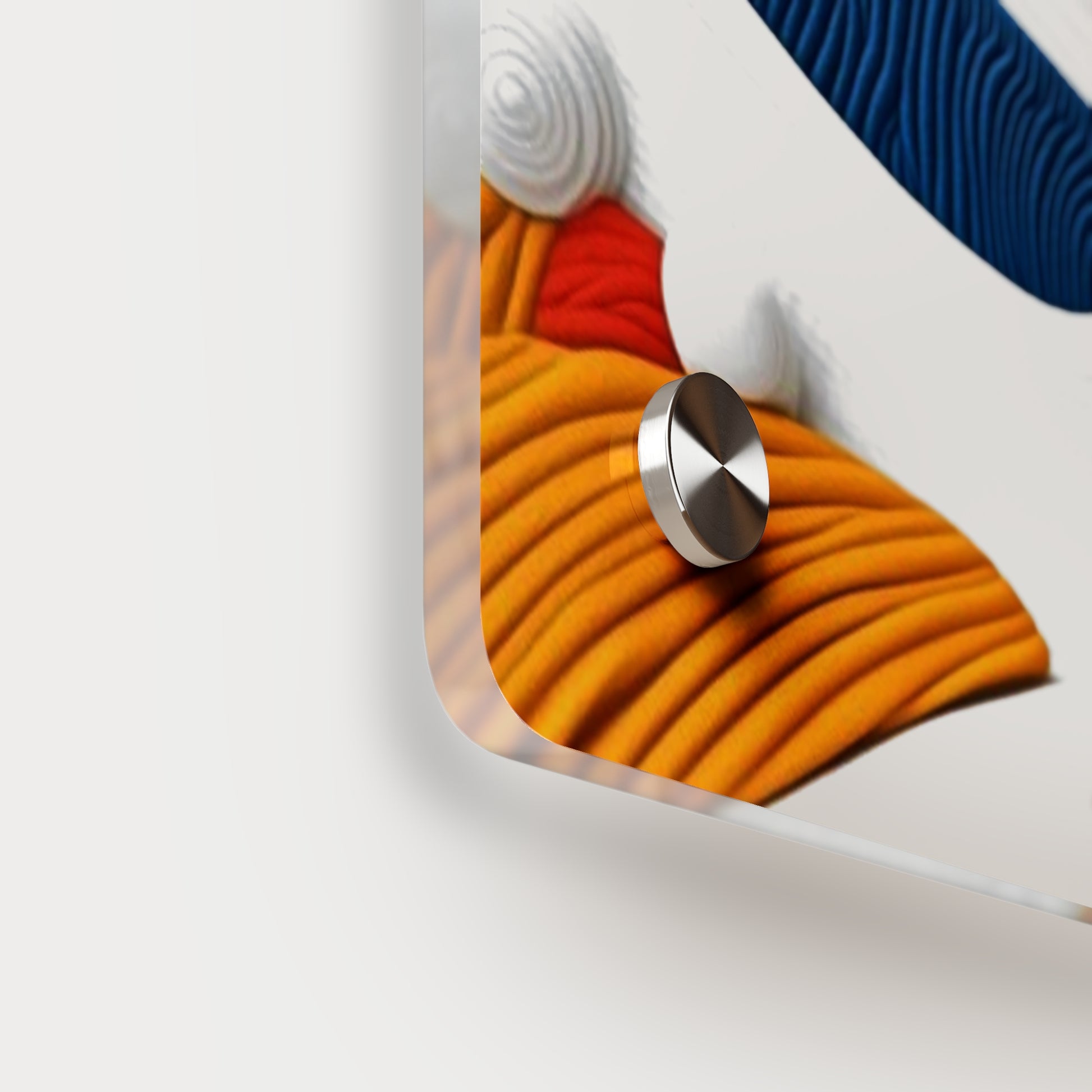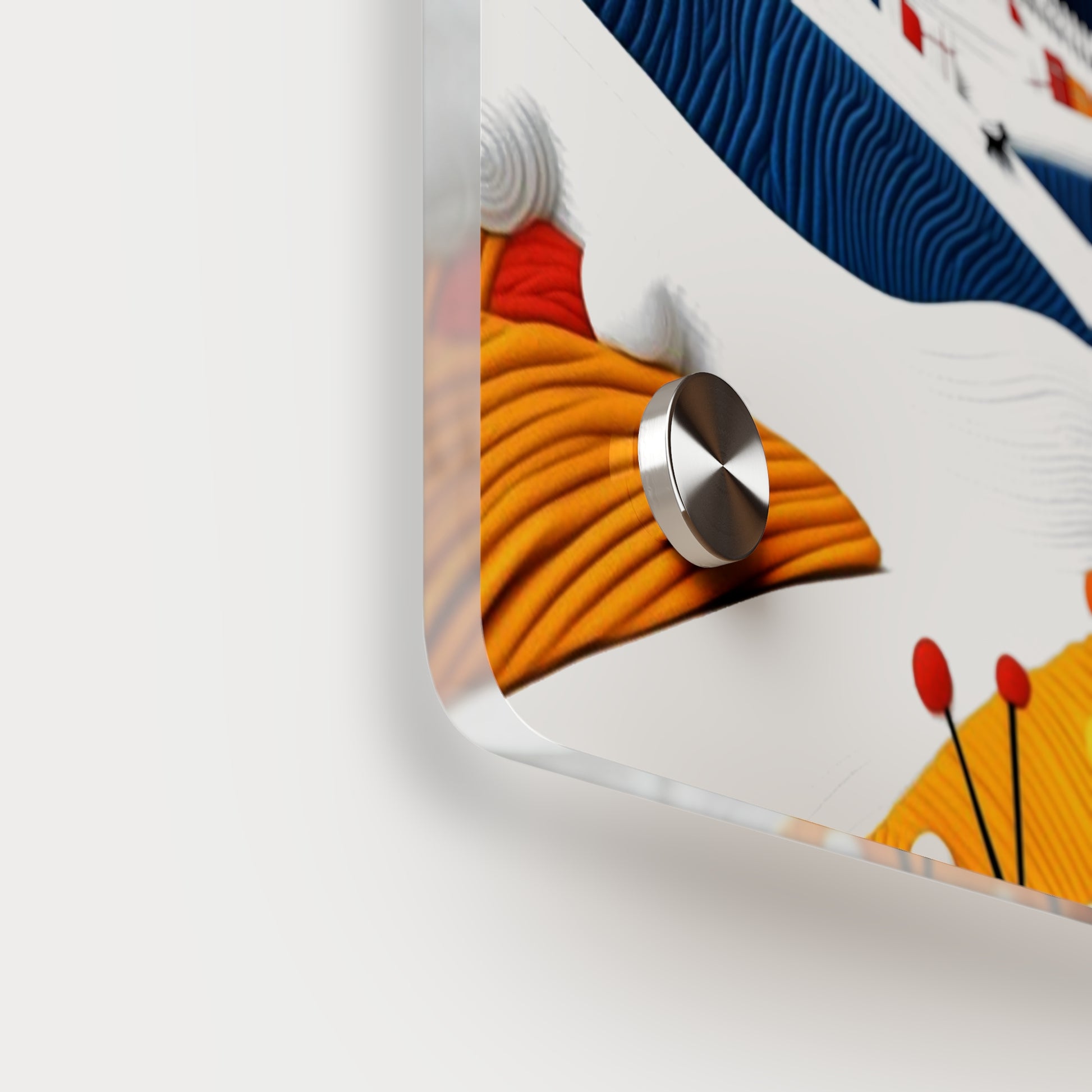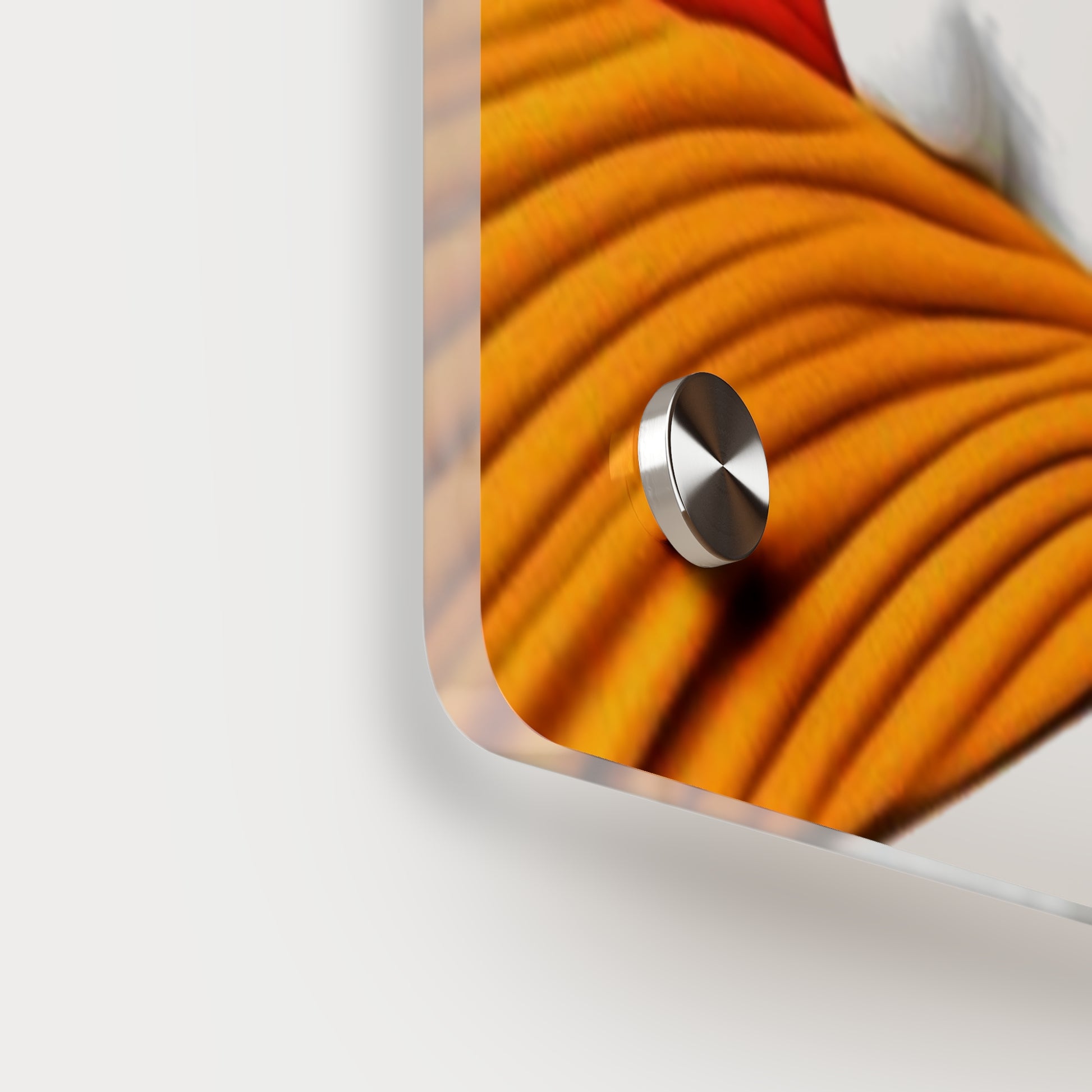 Acrylic art panels are a modern way to display beautiful and vibrant art that looks like it's embedded in clear glass. They have a clear, glossy acrylic surface and a white vinyl backing. Four silver stand-offs make it very easy to mount to the wall. Make your own original designs and print them on any (or all) of the seven available panel sizes in horizontal and vertical orientations. Square dimensions are available.