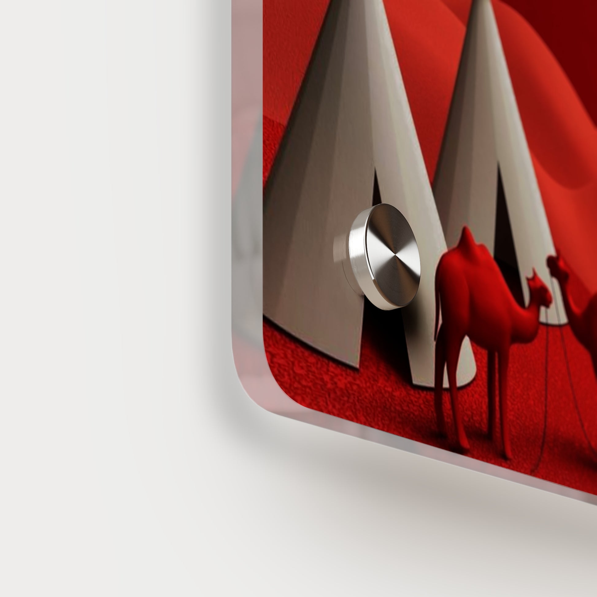 Acrylic art panels are a modern way to display beautiful and vibrant art that looks like it's embedded in clear glass. They have a clear, glossy acrylic surface and a white vinyl backing. Four silver stand-offs make it very easy to mount to the wall. Make your own original designs and print them on any (or all) of the seven available panel sizes in horizontal and vertical orientations. Square dimensions are available.