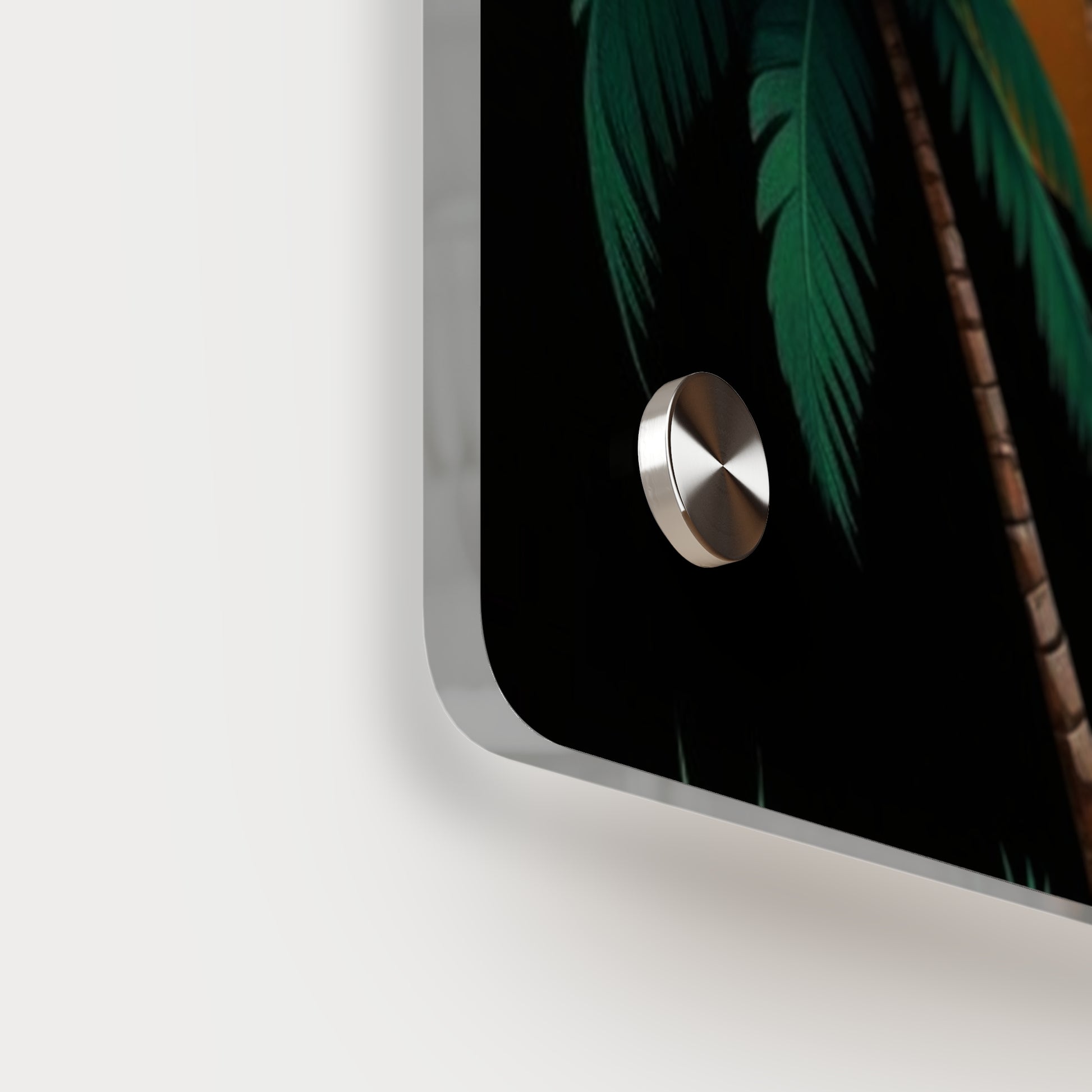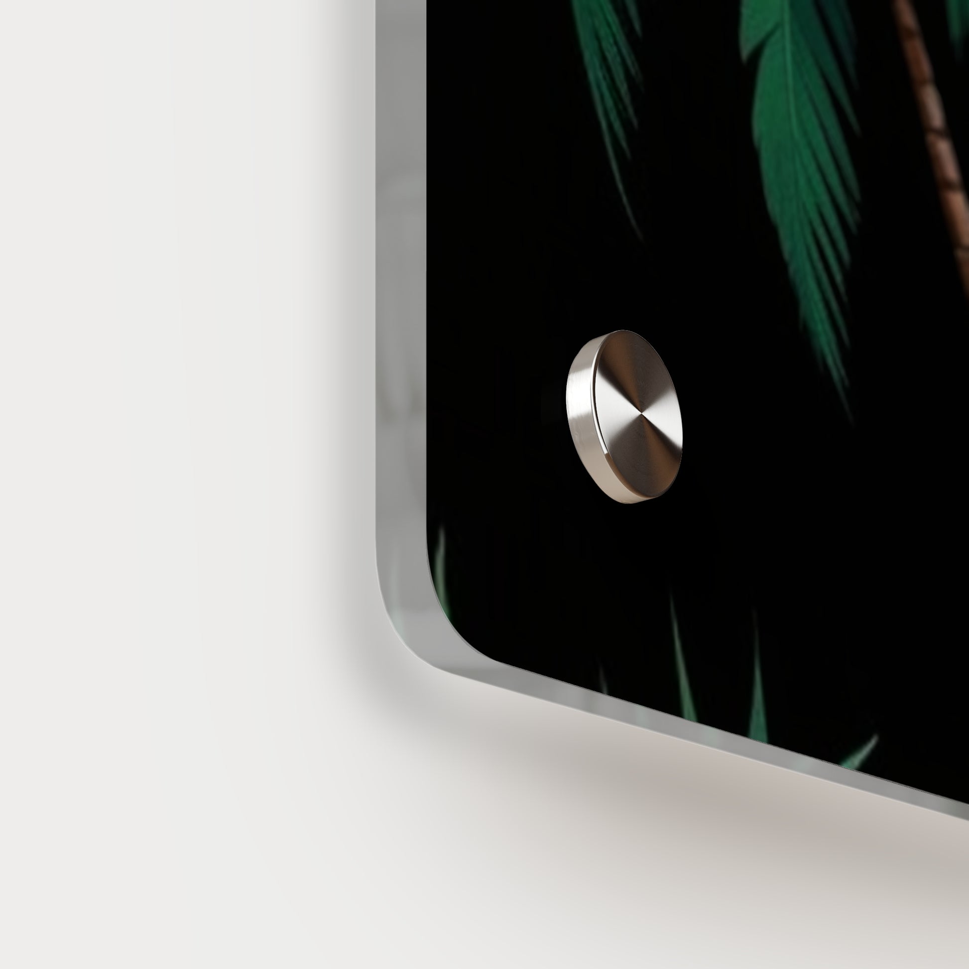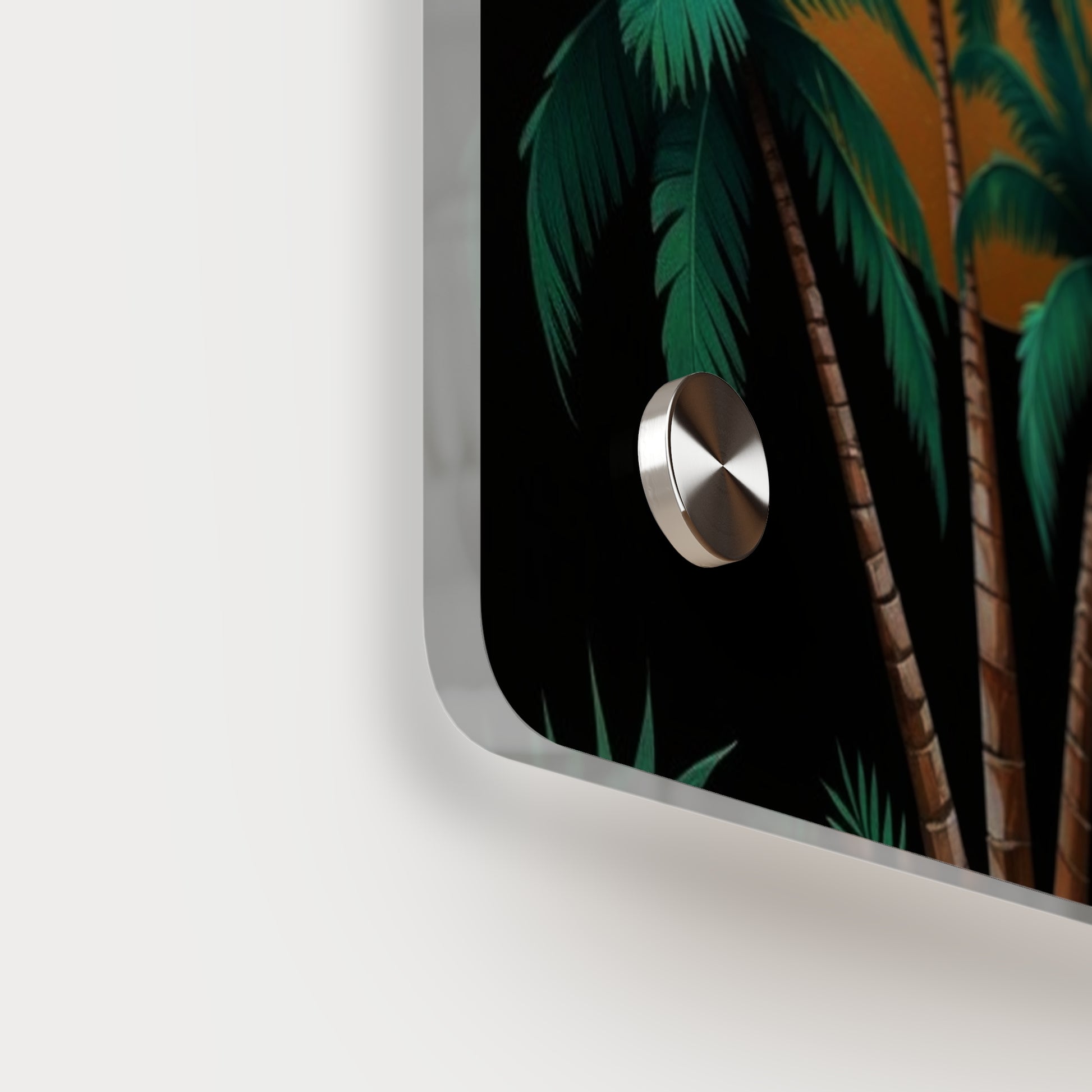 Acrylic art panels are a modern way to display beautiful and vibrant art that looks like it's embedded in clear glass. They have a clear, glossy acrylic surface and a white vinyl backing. Four silver stand-offs make it very easy to mount to the wall. Make your own original designs and print them on any (or all) of the seven available panel sizes in horizontal and vertical orientations. Square dimensions are available.