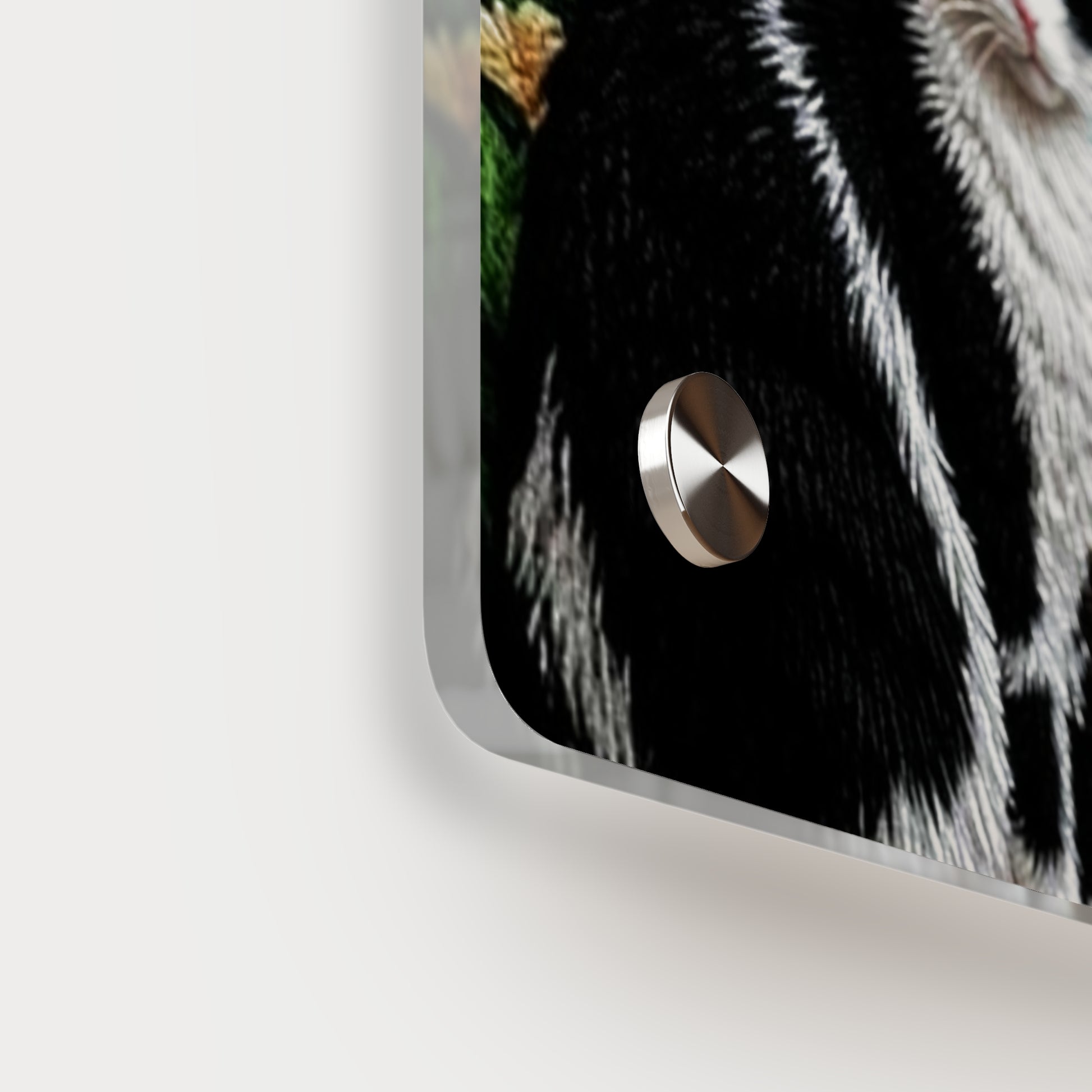 Acrylic art panels are a modern way to display beautiful and vibrant art that looks like it's embedded in clear glass. They have a clear, glossy acrylic surface and a white vinyl backing. Four silver stand-offs make it very easy to mount to the wall. Make your own original designs and print them on any (or all) of the seven available panel sizes in horizontal and vertical orientations. Square dimensions are available.