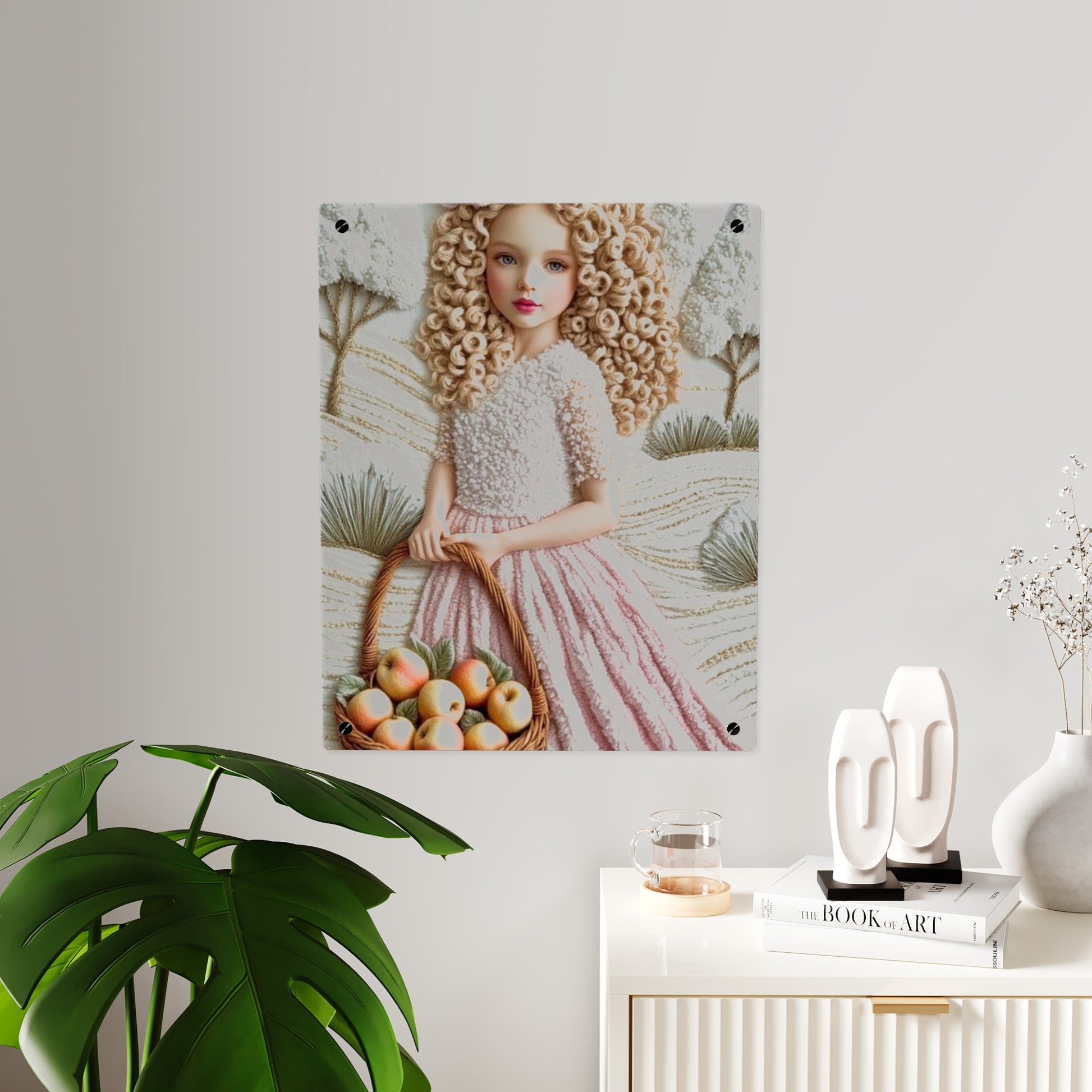 Cute Blonde Crochet Girl Acrylic Wall Art Panels Home Decor