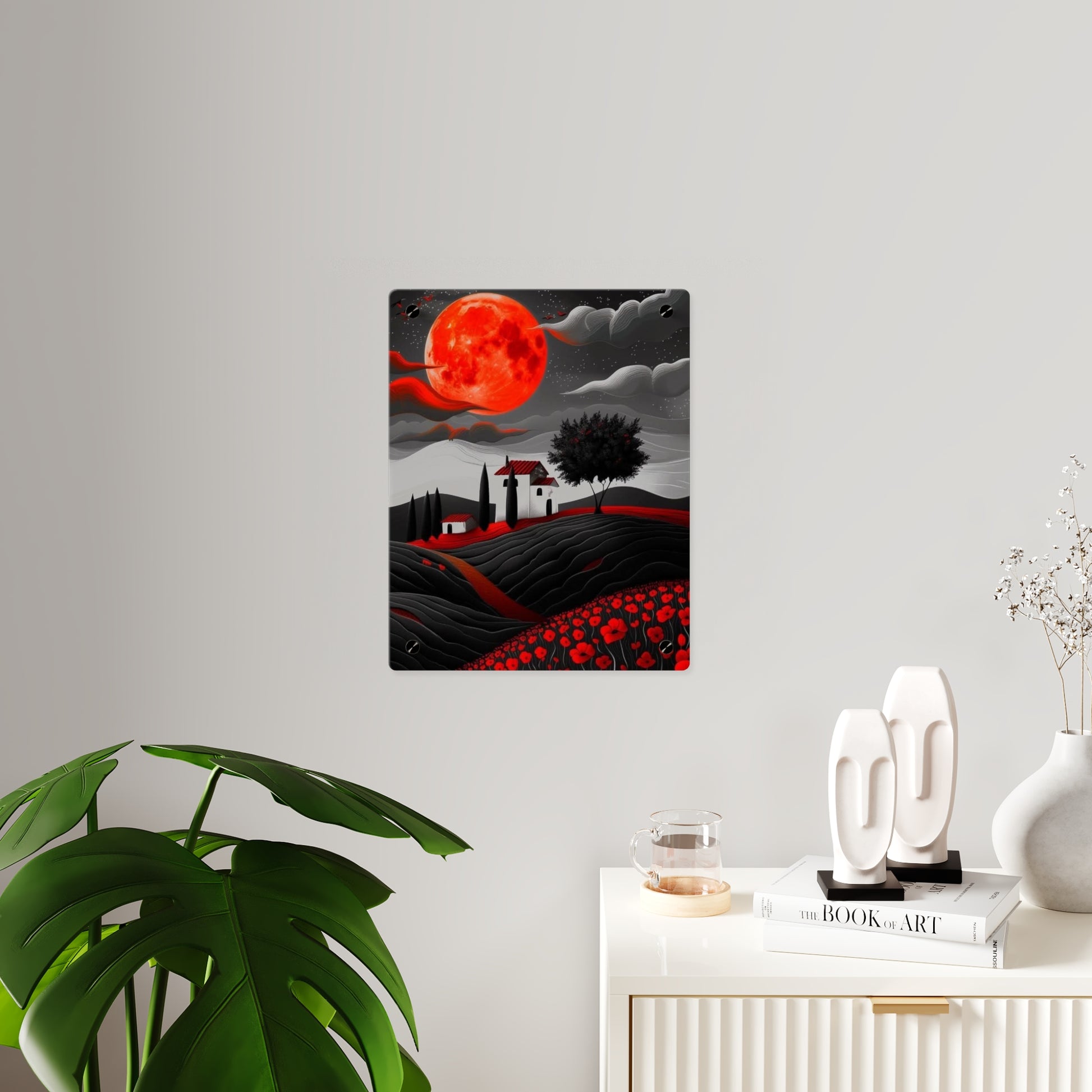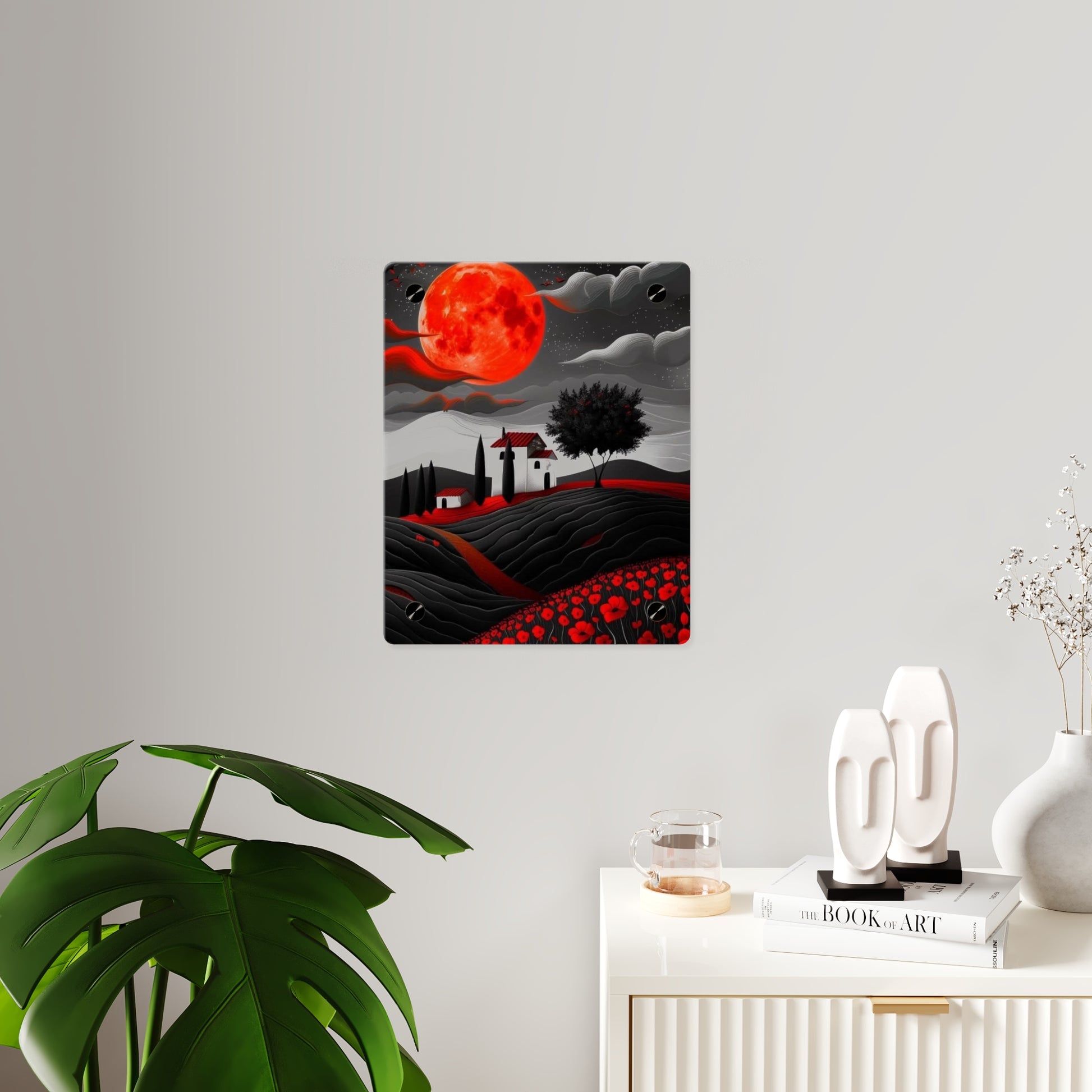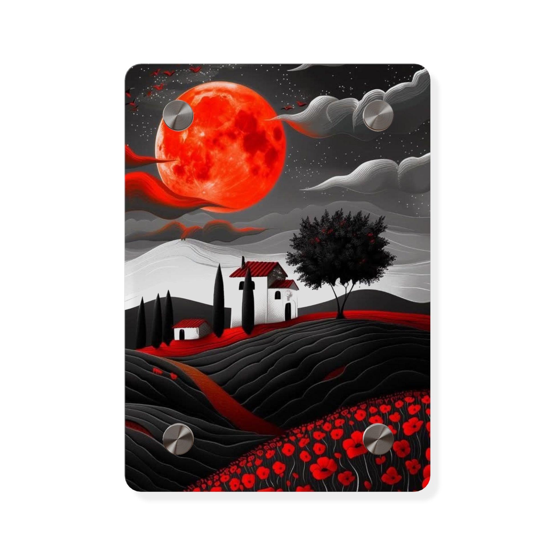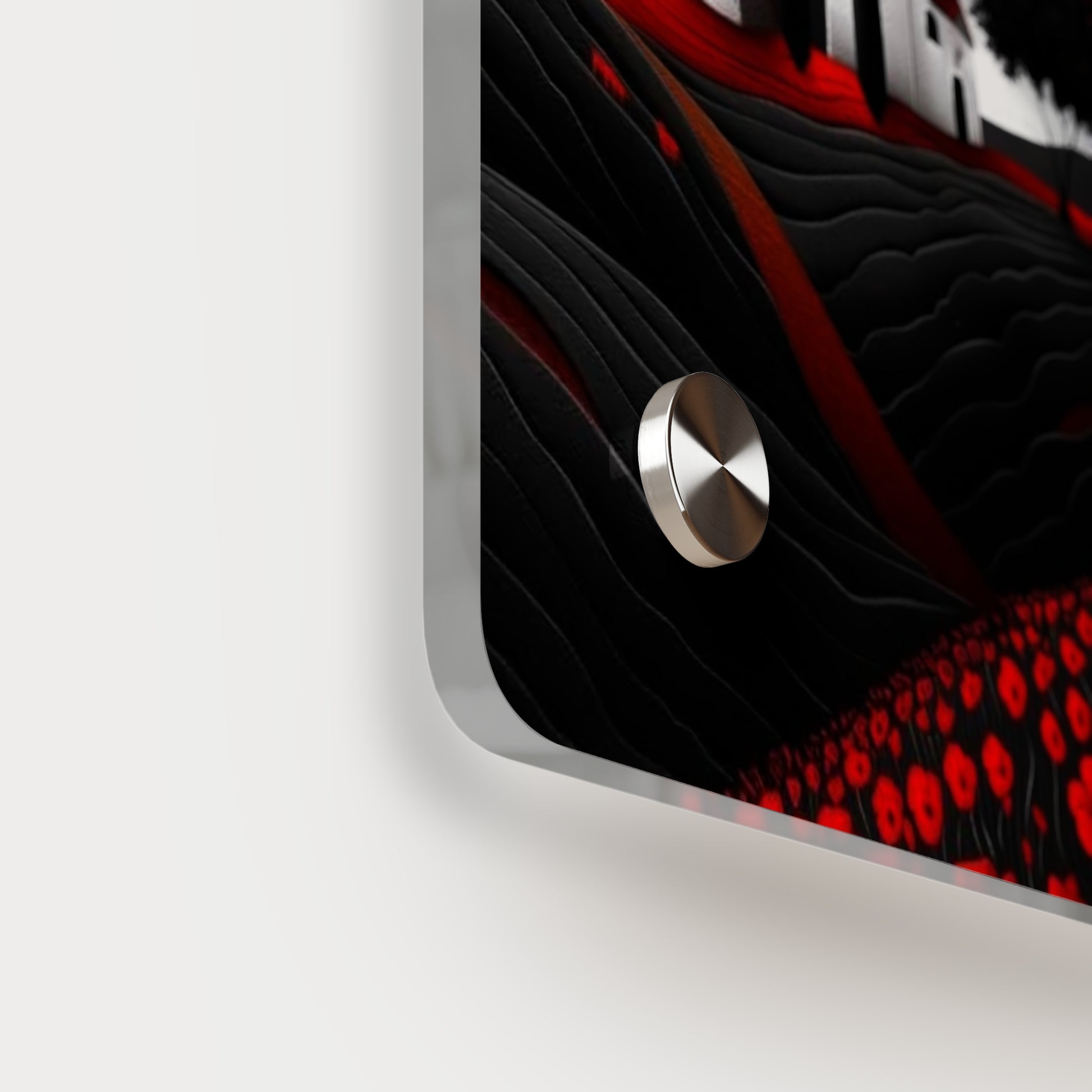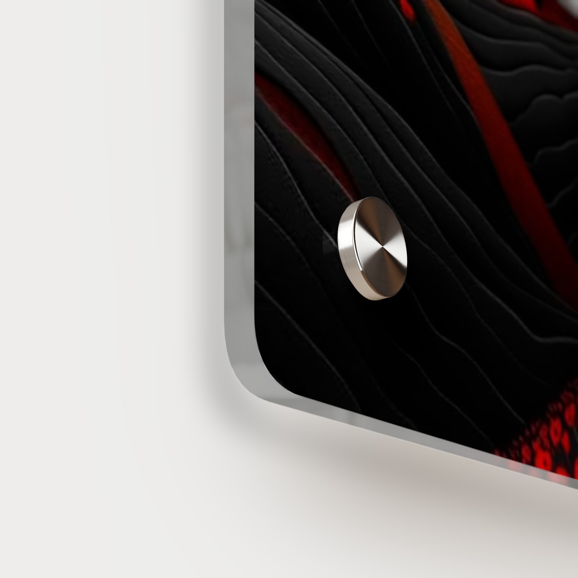 Acrylic art panels are a modern way to display beautiful and vibrant art that looks like it's embedded in clear glass. They have a clear, glossy acrylic surface and a white vinyl backing. Four silver stand-offs make it very easy to mount to the wall. Make your own original designs and print them on any (or all) of the seven available panel sizes in horizontal and vertical orientations. Square dimensions are available.