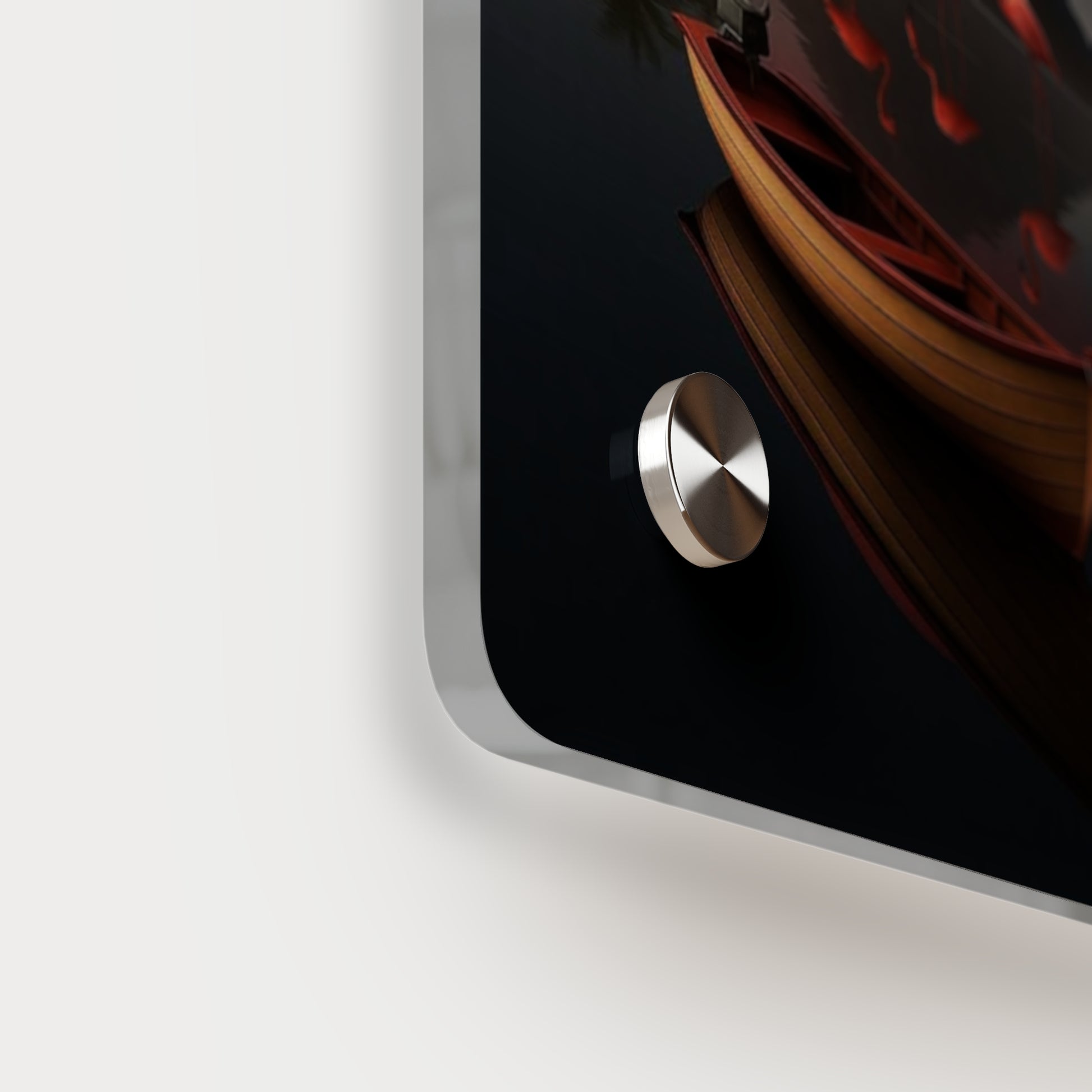 Acrylic art panels are a modern way to display beautiful and vibrant art that looks like it's embedded in clear glass. They have a clear, glossy acrylic surface and a white vinyl backing. Four silver stand-offs make it very easy to mount to the wall. Make your own original designs and print them on any (or all) of the seven available panel sizes in horizontal and vertical orientations. Square dimensions are available.
