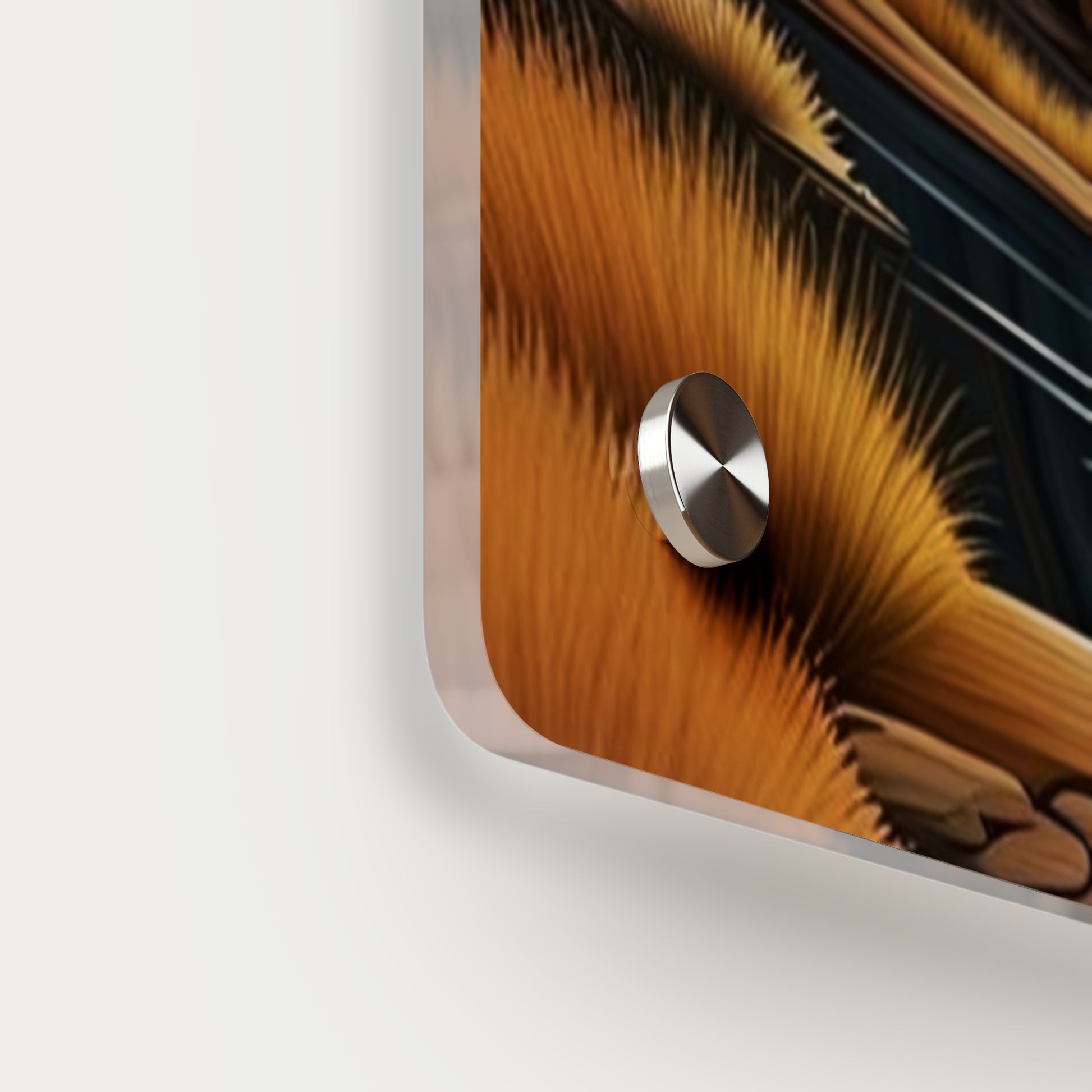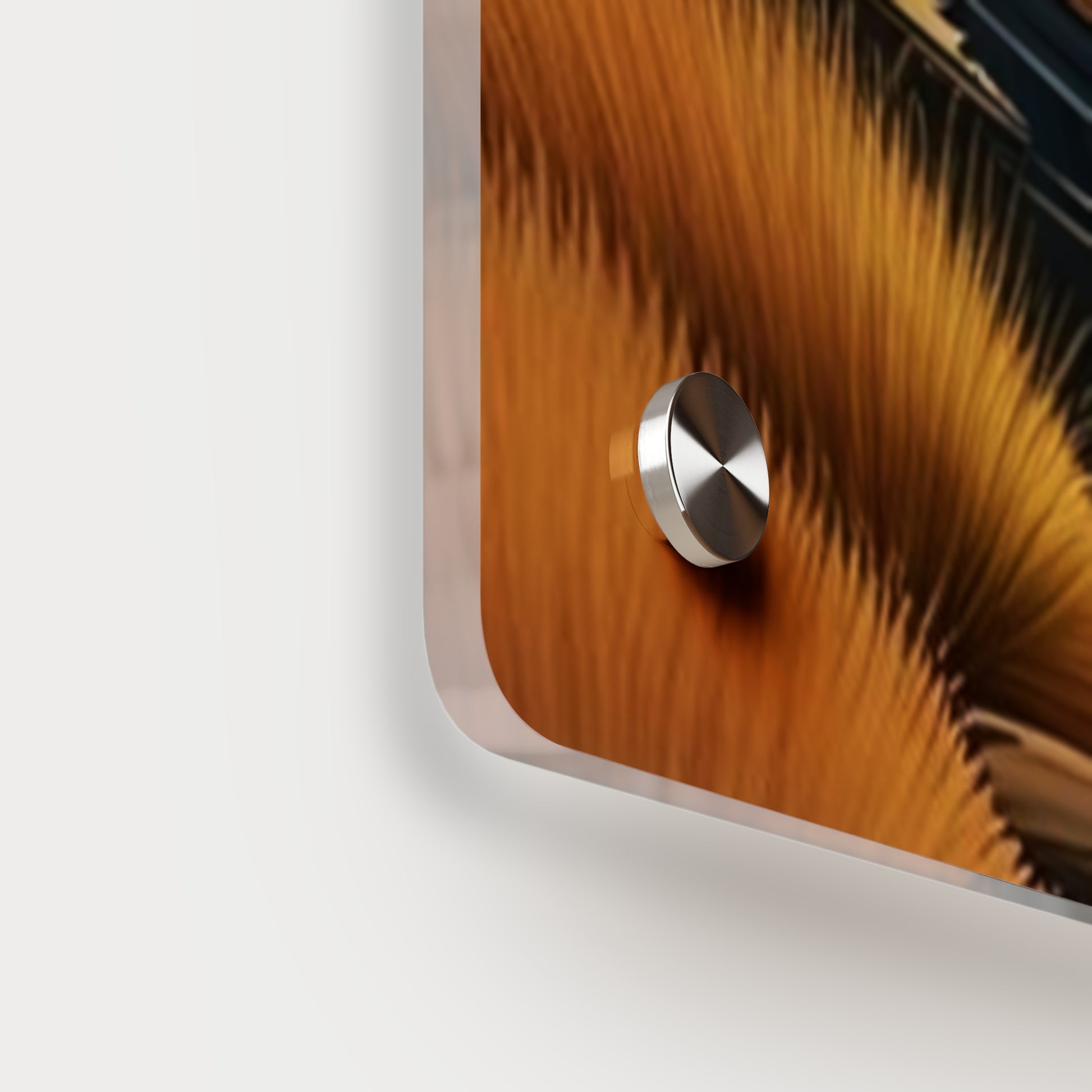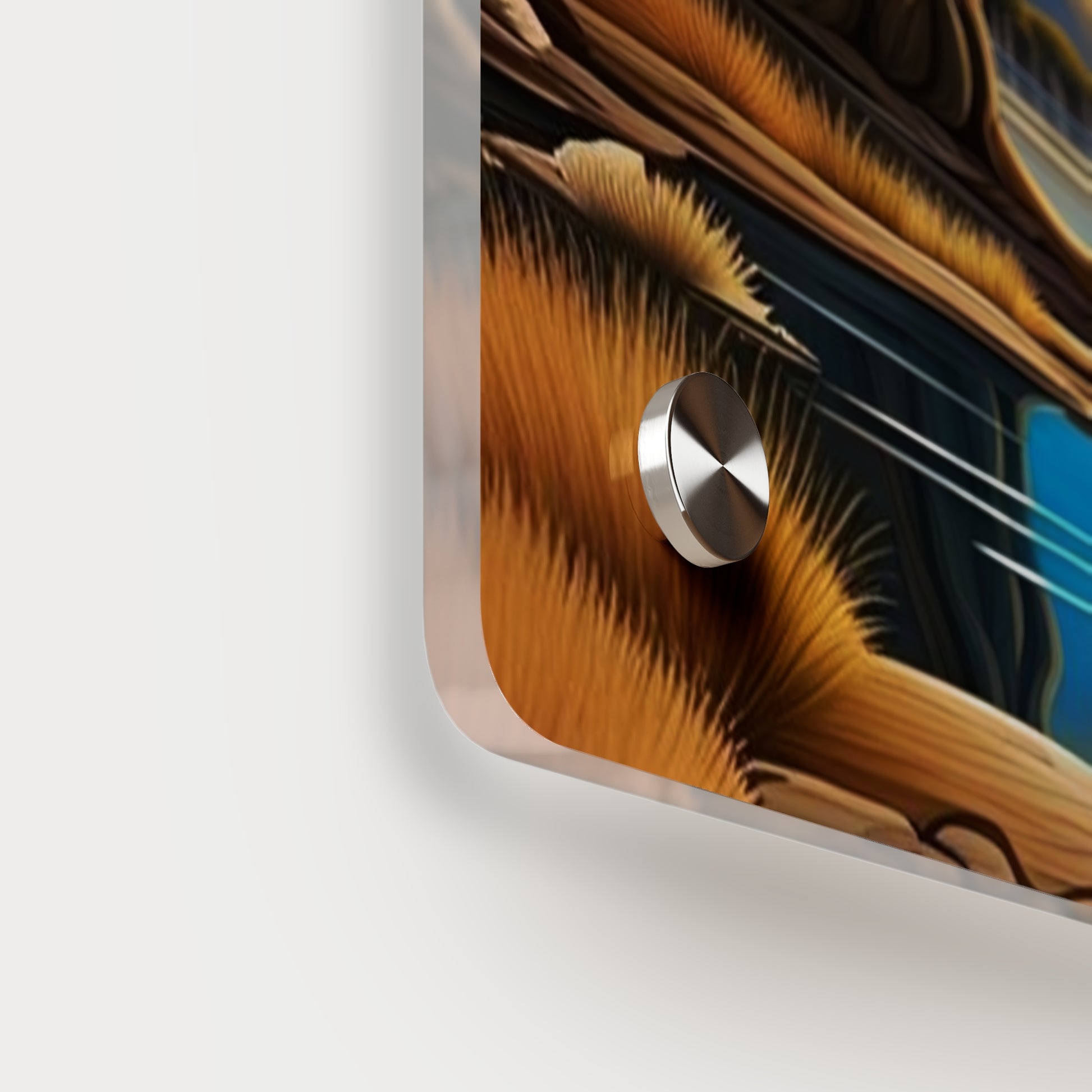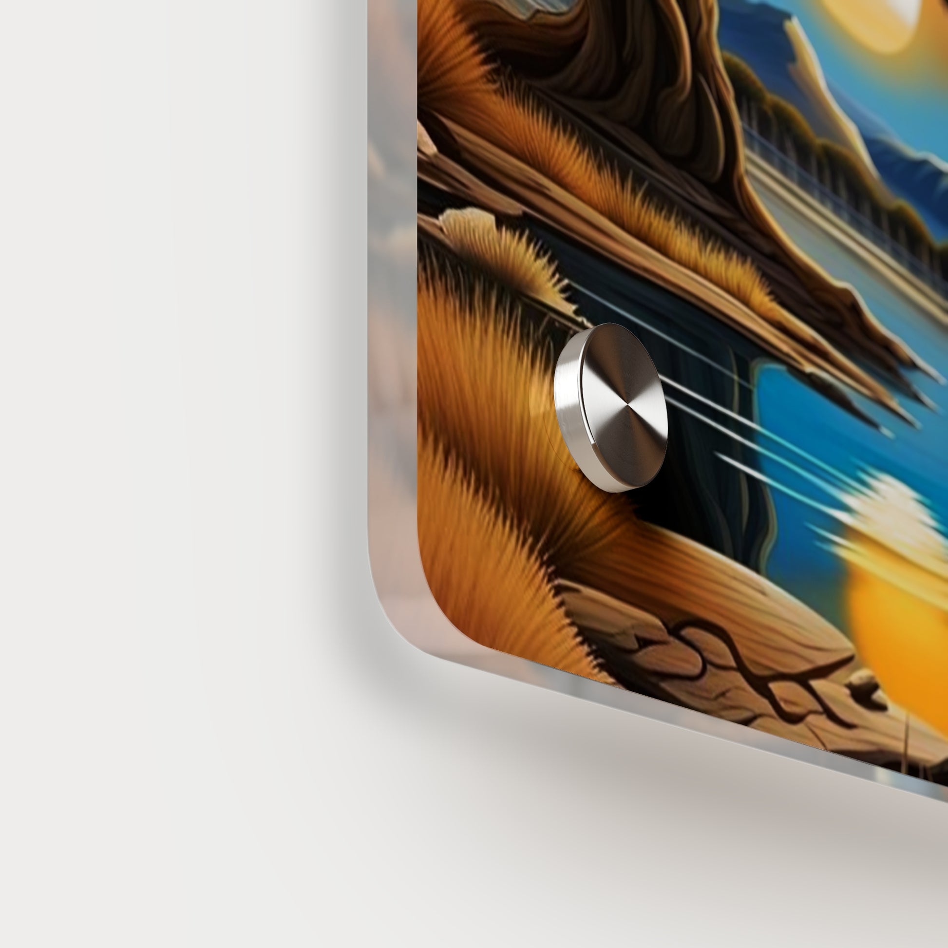 Acrylic art panels are a modern way to display beautiful and vibrant art that looks like it's embedded in clear glass. They have a clear, glossy acrylic surface and a white vinyl backing. Four silver stand-offs make it very easy to mount to the wall. Make your own original designs and print them on any (or all) of the seven available panel sizes in horizontal and vertical orientations. Square dimensions are available.